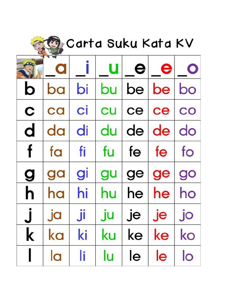 Carta Suku Kata Kv / Kalau dah pandai membaca, mari kita tengok macam mana adik adik nak tulis pulak.. Hari ini saya sempat mengupload suku kata kv yang telah saya buat dalam bentuk jpeg menggunakan perisian photoshop. Suku kata bm sjkt tahun 2 here. Sesuai untuk murid prasekolah, pemulihan khas dan linus. Eja suku kata dan sebut perkataan. Sebelum mula bercuti esok, bahan berikut telah saya uploadkan;
