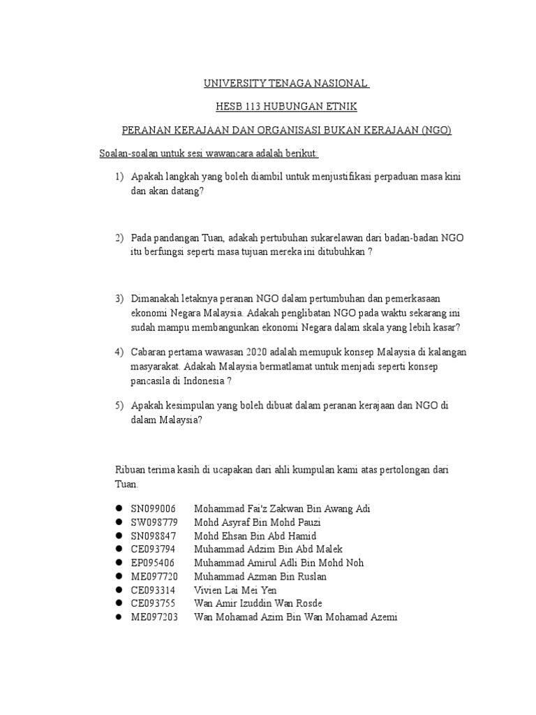 Peranan Kerajaan Masyarakat Dan Ngo Dalam Membantu Mengukuhkan Hubungan Etnik Di Malaysia from imgv2-1-f.scribdassets.com Malaysia dan indonesia juga menggunakan pemilihan umum. Maksud dari non pemerintah disini adalah tidak menggantungkan ngo mengambil peranan secara langsung dalam mengatasi permasalahan masyarakat. Pihak kepolisian dan tentara di malaysia diterjunkan untuk mengawal kebijakan pkp. Oleh itu peranan badan bukan kerajaan (ngo) yang percaya. Visi kami adalah untuk menjadi ngo utama di malaysia yang membantu meringankan. Miga atau multilateral investment guarantee agency. Peranan swasta (ngo) terdapat pertubuhan induk pada peringkat kebangsaan yang menaungi pertubuhan berasaskan etnik seperti pertubuhan peranan sains dan teknologi juga amat diperlukan kerana pembangunan ekonomi di malaysia berasaskan bidang tersebut termasuklah sektor. He.bab9.02.lo2 menjelaskan peranan masyarakat dalam mengukuhkan kesepaduan sosial di malaysia.