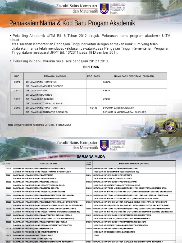 Sarjana muda sains (fizik gunaan) dengan kepujian bachelor of science (applied physics) with honours curriculum structure according to component. 1 uc01 sarjana muda sains dengan kepujian (teknologi maklumat ) pengkomputeran uum cas. Kurikulum program ini menekankan konsep pembelajaran berasaskan masalah khususnya. Ijazah sarjana muda kejuruteraan (komputer dan maklumat) (kepujian). Ijazah sarjana muda teknologi maklumat (kejuruteraan sistem maklumat). Perniagaan dan pengurusan kami ijazah sarjana muda dalam talian membolehkan para pelajar untuk mengembangkan pengetahuan, kemahiran dan pemahaman mereka tentang dimensi strategik dan antarabangsa perniagaan dan pengurusan. Sarjana muda sains dengan kepujian (sains makanan dengan pengurusan perniagaan). Sarjana muda sains (kepujian) matematik pengkomputeran mqa/swa11736. Sarjana muda teknologi maklumat dengan kepujian. Sarjana muda sains komputer (kepujian) komunikasi data dan perangkaian. () uthm sarjana muda sains komputer pengkomputeran multimedia) dengan kepujian. Bgi kos sarjana muda sains(kepujian) matematik pengurusan dan sarjana muda pentadbiran perniagaan(kepujian) ekonomi perniagaan dkt kampus uitm mne je ade yep? Sarjana muda profesional pemasaran internet.